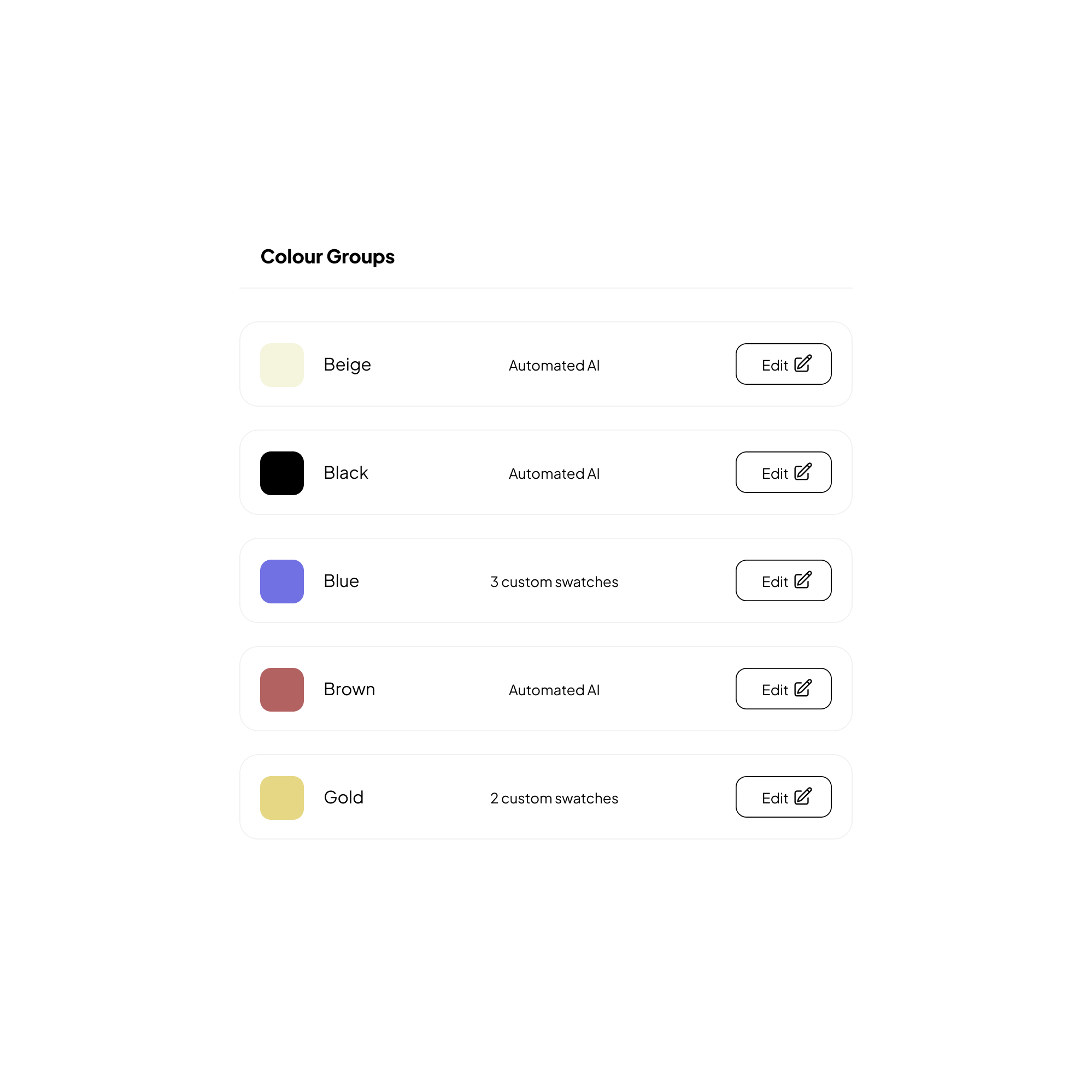 Declare your own custom colour groups and let AI handle the hard work with the ability to add image swatches