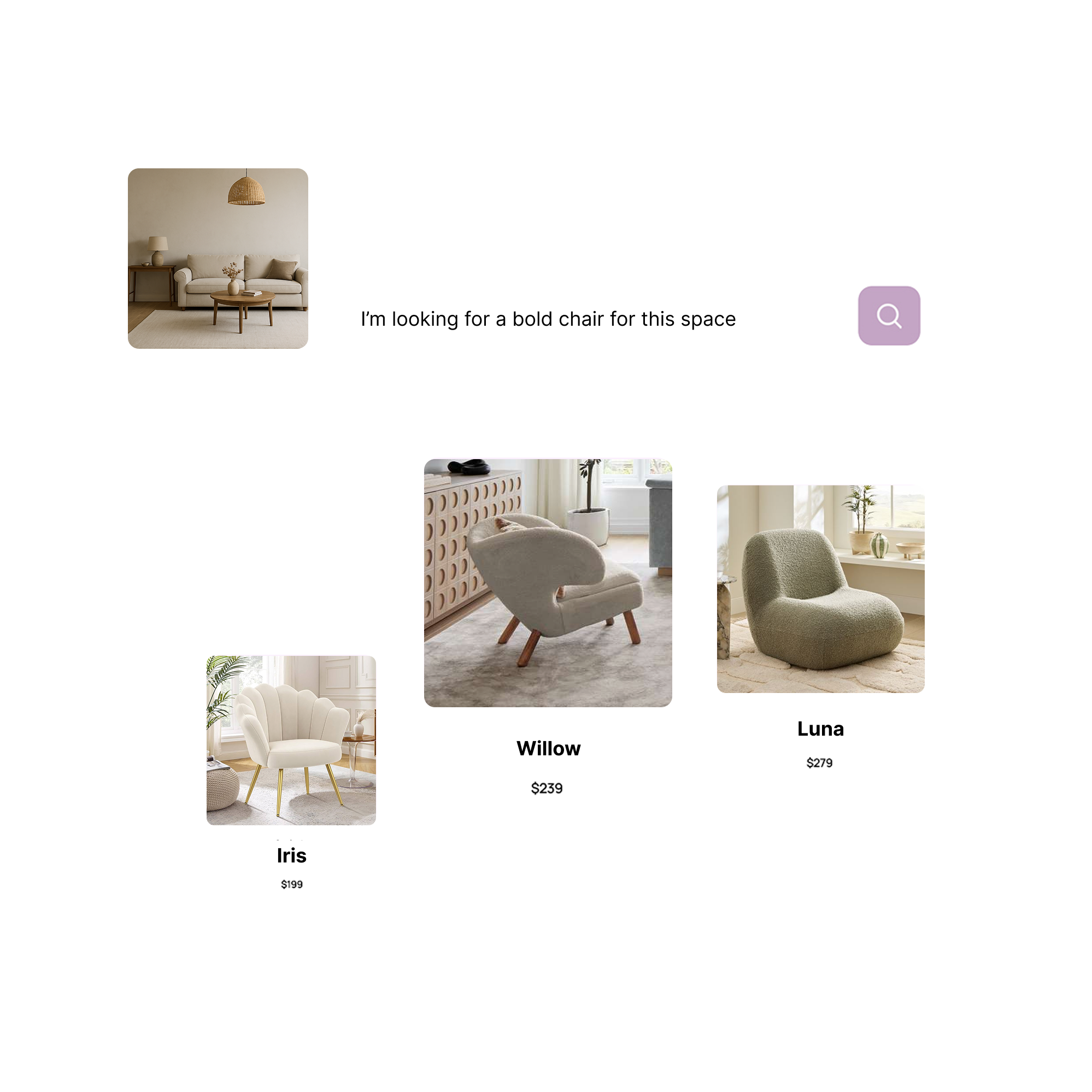 Turn browsers into buyers. Our real-time AI deciphers each search to guide shoppers to relevant products, not endless lists.